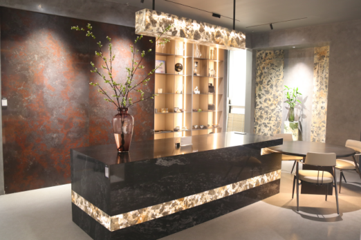 歐若拉精工奢石柳州店是有歸屬感的家居空間。每一件藝術裝飾,皆是生活積累的趣味,透光溢彩的產品應用、精妙絕倫的奢石家具、充滿藝術感的空間展示等打造一個個觸手可及的藝術展示空間,低聲訴說著關于奢石高定的故事。
