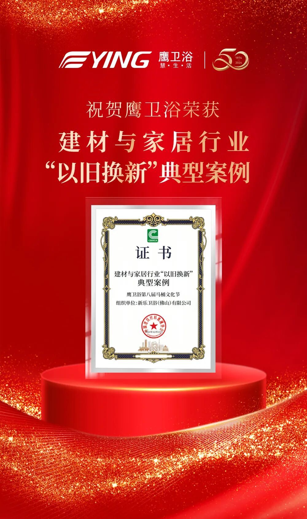 本次大會(huì),中國建筑材料流通協(xié)會(huì)在全國建材與家居行業(yè)內(nèi)組織開展了2024年建材與家居行業(yè)“以舊換新”評(píng)選活動(dòng),經(jīng)大會(huì)一致評(píng)定,鷹衛(wèi)浴榮獲“以舊換新”行動(dòng)先鋒、“以舊換新”典型案例兩大榮譽(yù),彰顯鷹衛(wèi)浴在“以舊換新”國策項(xiàng)目中的出色表現(xiàn)和市場口碑。
